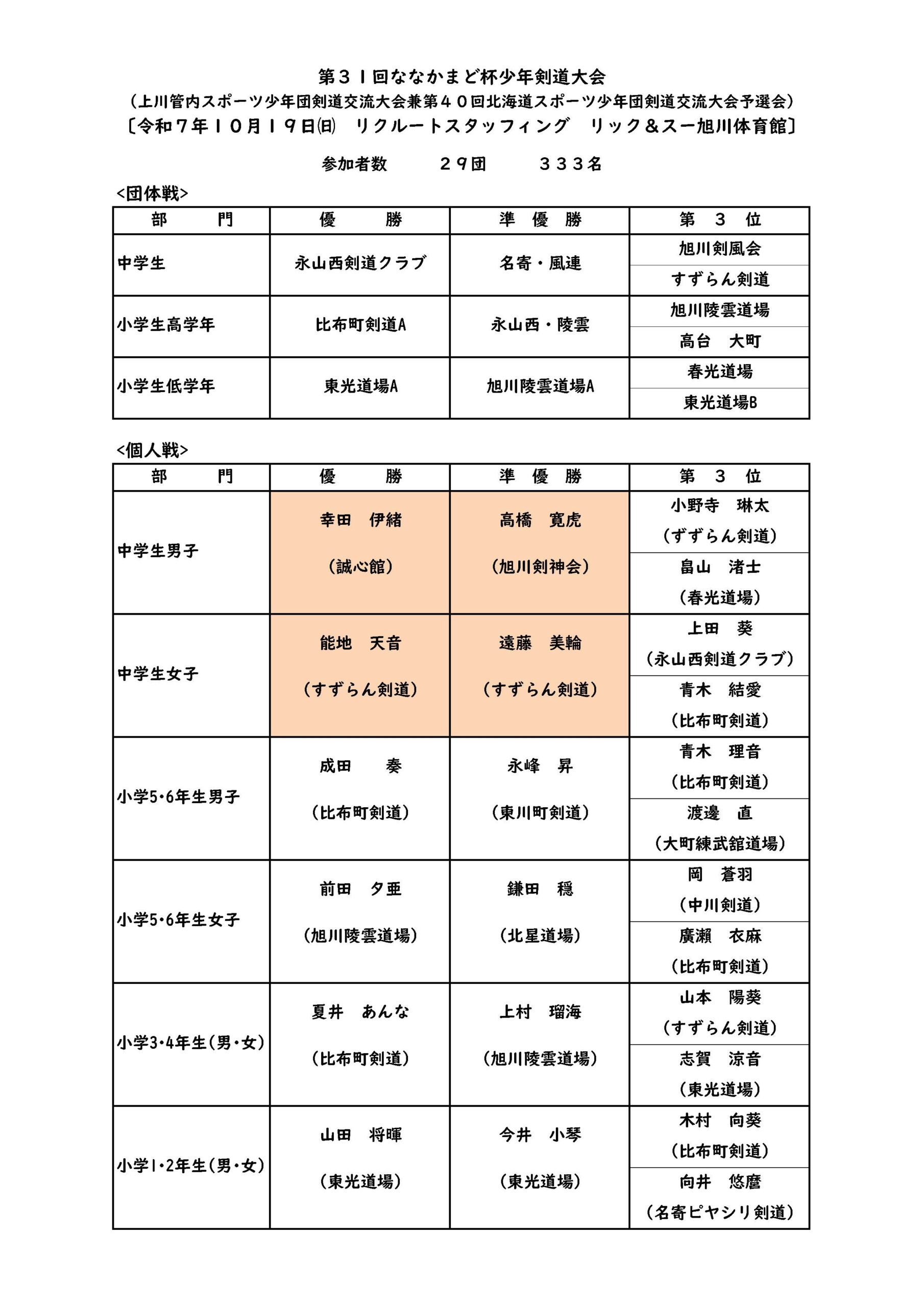 令和7年10月19日(日)に行われた標記大会の大会結果をお知らせします。